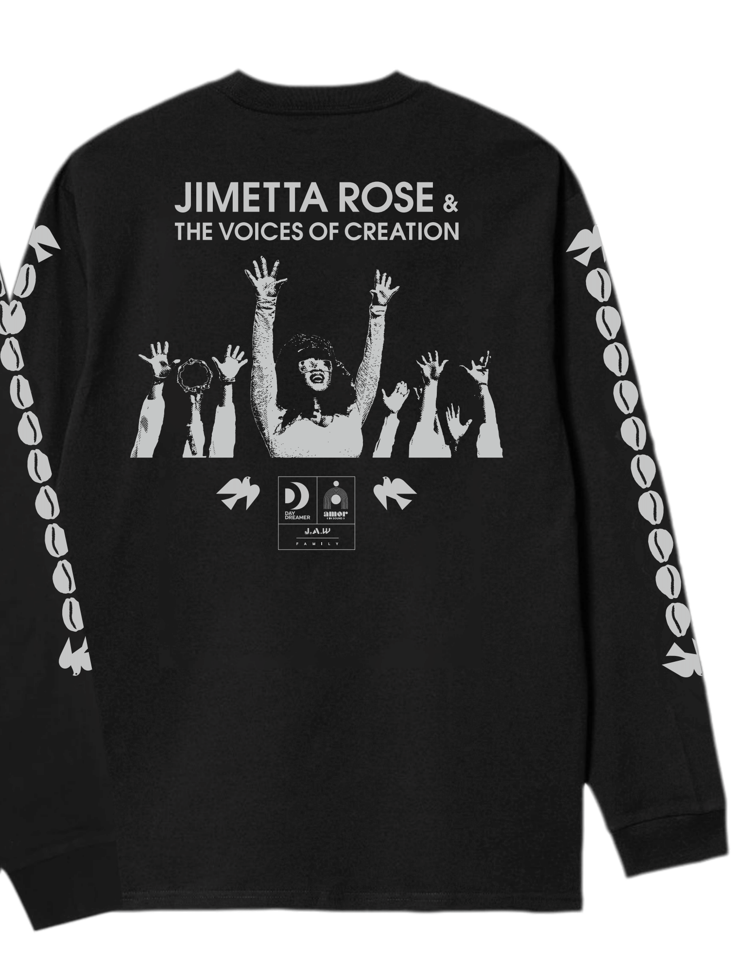 Limited Edition shirt produced for the Jimetta Rose & The Voices of Creation August UK/Germany tour, made by Carhartt in long sleeve black shirt with grey detail